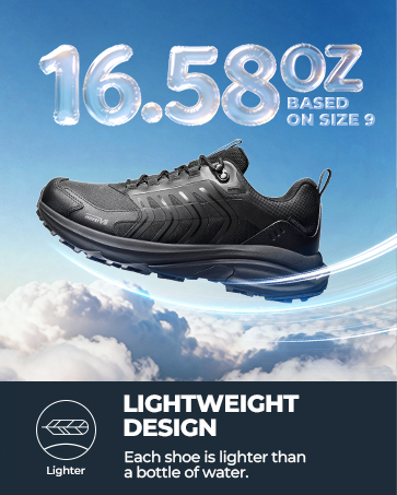 The Supercritical foam insole with arch support reduces foot fatigue, while the softer EVA layer delivers superior cushioning, and the firmer EVA layer ensures stable support. With a lugged rubber outsole for all-terrain stability, these men’s hiking shoes are ideal for hiking, trips, camping, backpacking, outdoor work, and everyday wear.